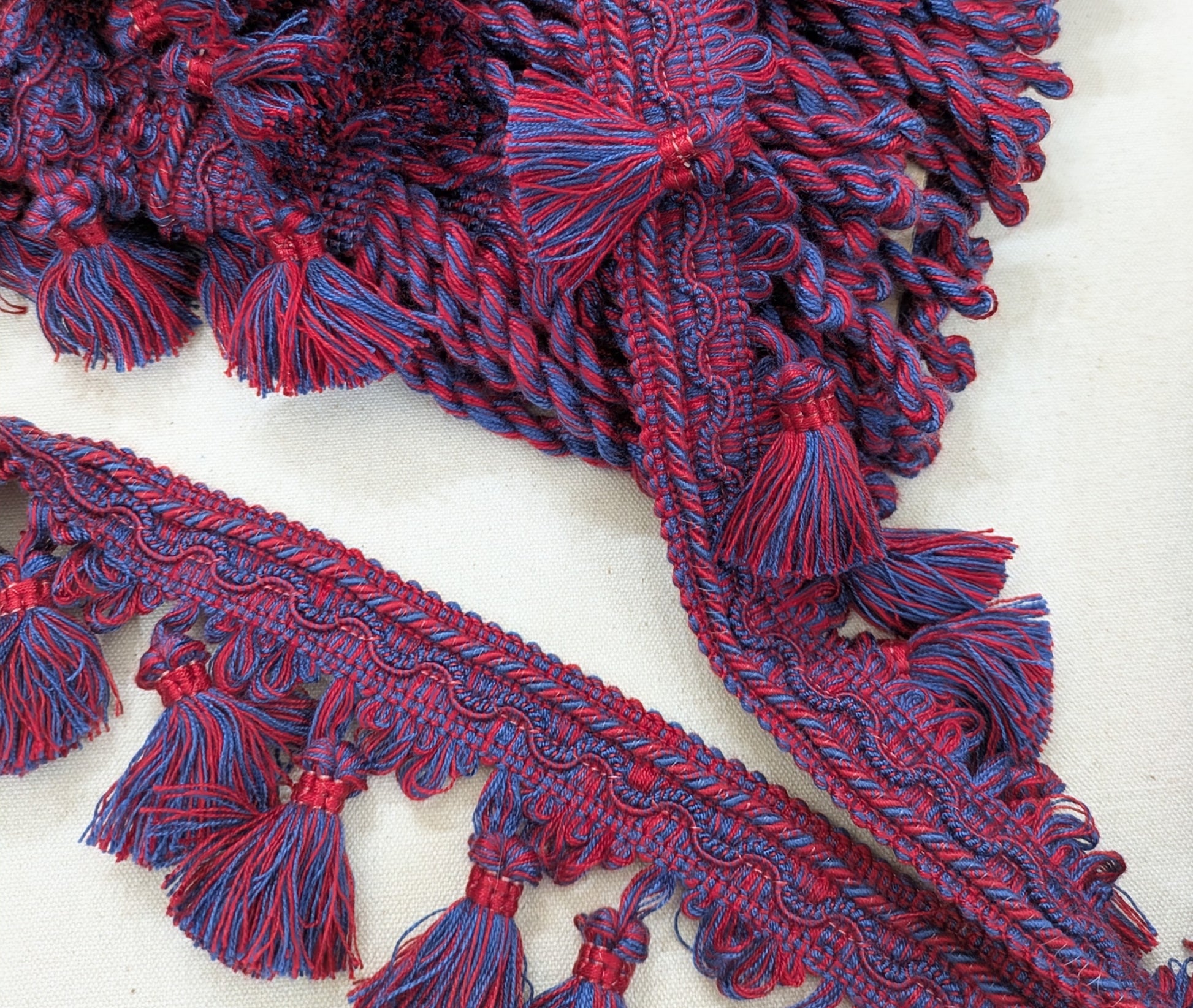 Blue & Red Tassel fringe & Matching Bullion fringe