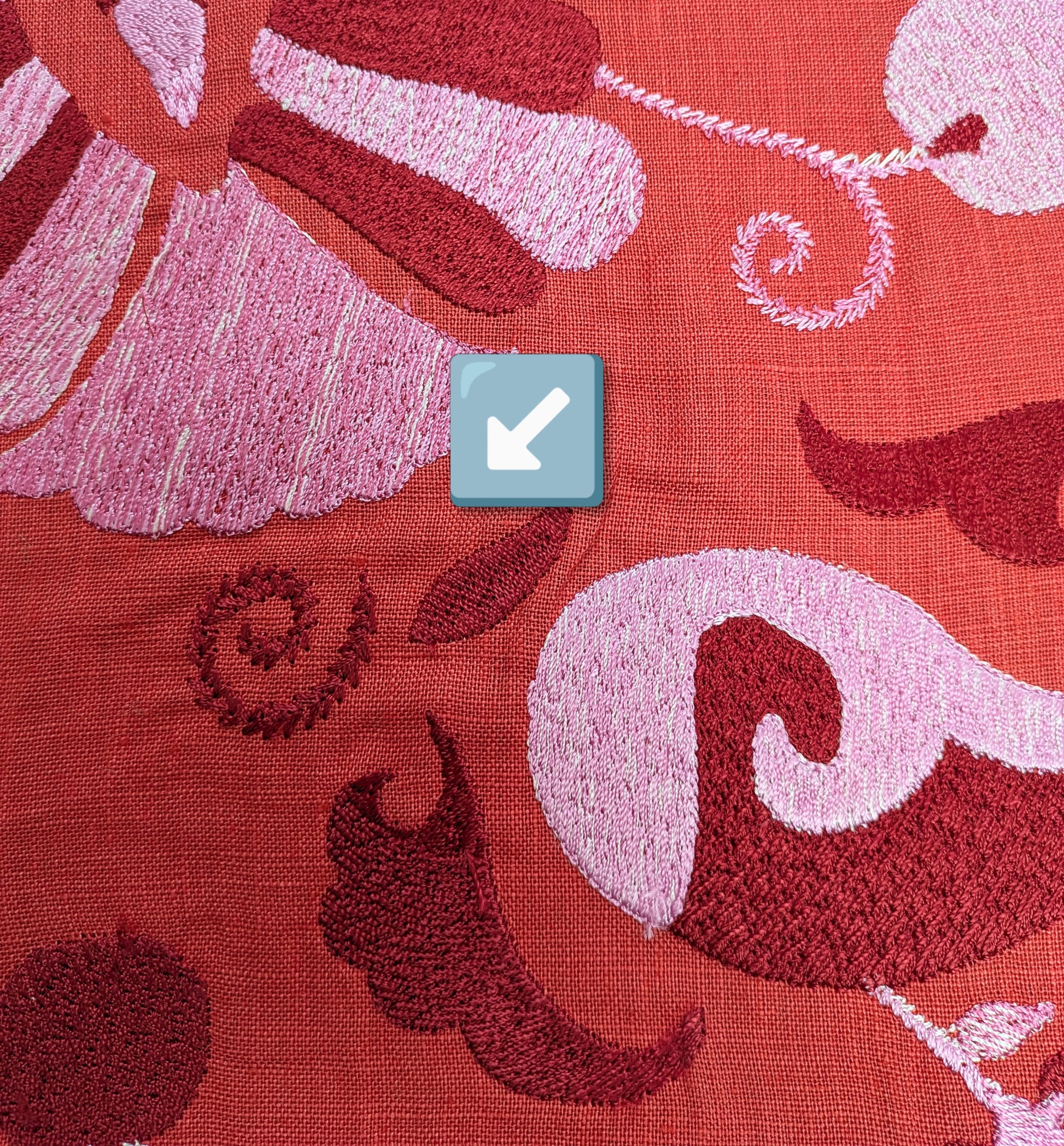 Unused, like new condition, from a collector - I think the fabric may have been sold as a SS (Slight Second) - please see the 2 photos with arrows - there is one area of the fabric where the embroidery is different. This is the only fault I can find.