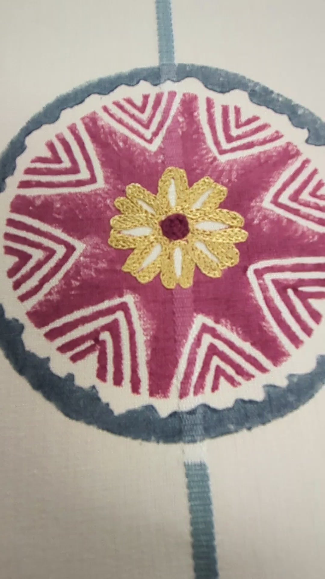 This fabric combines weave, hand-block printing and embroidery.
